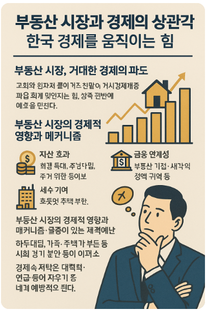 부동산 시장은 단순한 투자처를 넘어 거시경제와 민생 전반에 영향을 미친다. 본 글에서는 부동산 시장과 경제의 상호작용, 파급효과, 그리고 정부·가계·기업의 대응 전략을 심층 분석한다.