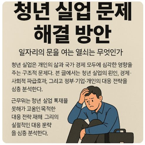 청년 실업은 개인의 삶과 국가 경제 모두에 심각한 영향을 주는 구조적 문제다. 본 글에서는 청년 실업의 원인, 경제·사회적 파급효과, 그리고 정부·기업·개인의 대응 전략을 심층 분석한다.